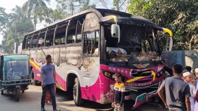 ধোলাইপাড়ে যাত্রীবাহী বাসে আগুন