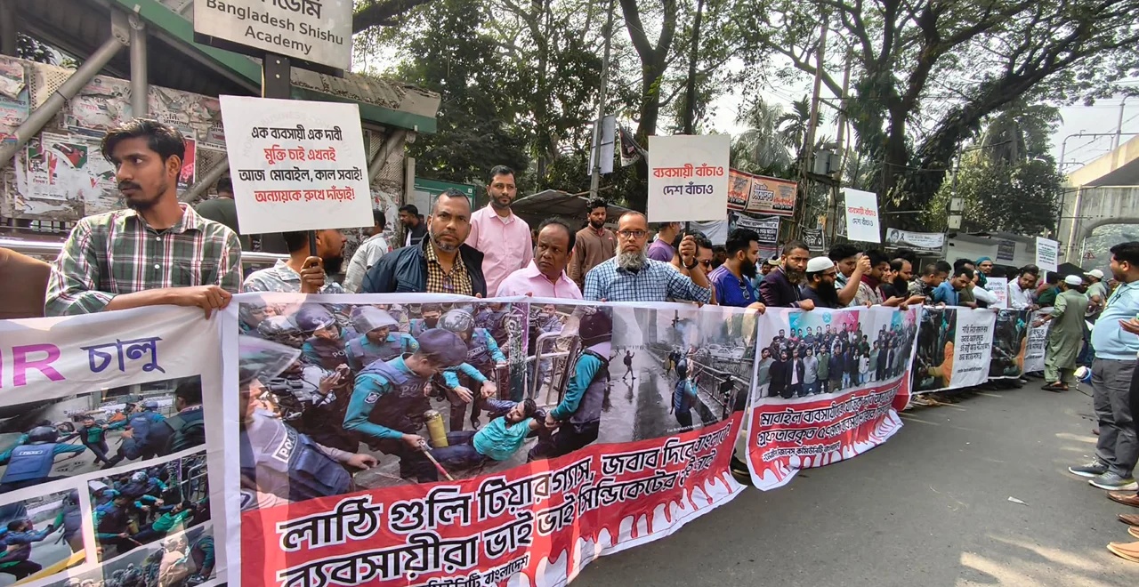 ৫৬ মোবাইল ব্যবসায়ীর মুক্তি ও মামলা প্রত্যাহারের দাবিতে জাতীয় প্রেস ক্লাবে মানববন্ধন