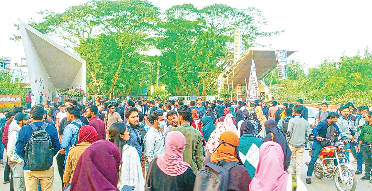 শাহজালাল বিশ্ববিদ্যালয়ে নির্বাচন স্থগিতের প্রতিবাদে উত্তাল ক্যাম্পাস, উপাচার্যের ভবনে তালা