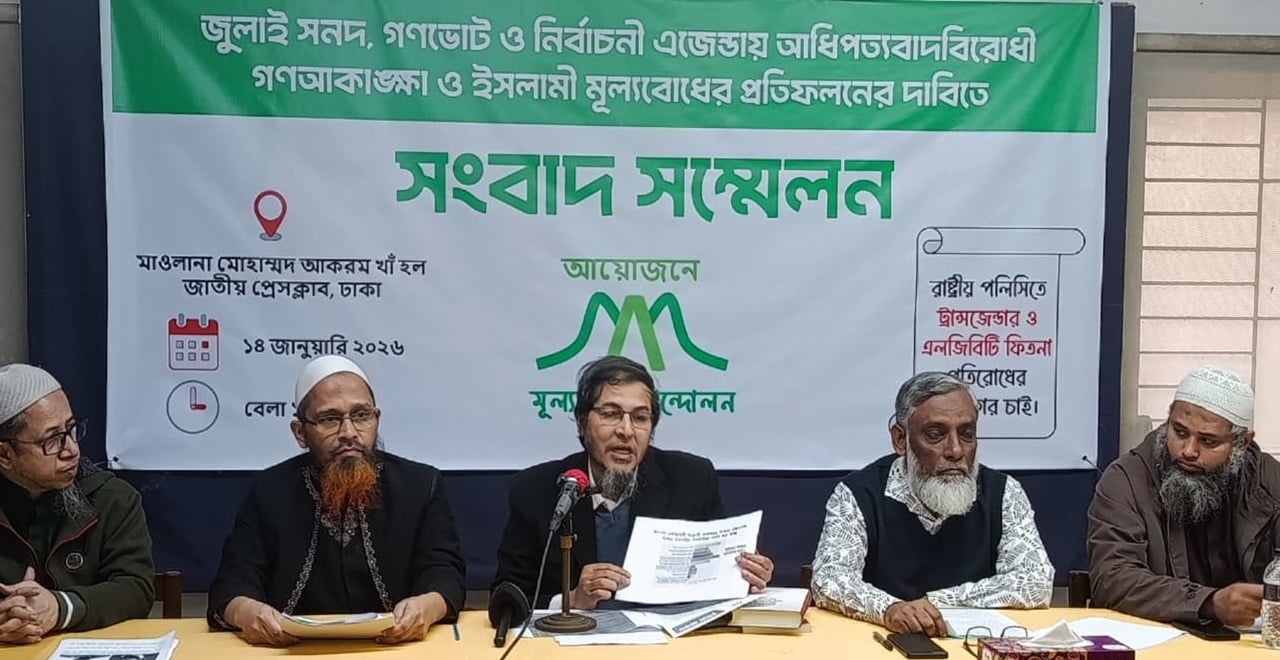জুলাই সনদের বিতর্কিত ধারা নিয়ে আপত্তি: গণভোটে ‘তিন বিকল্প’ রাখার দাবি ‘মূল্যবোধ আন্দোলন’-এর