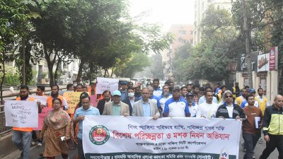 ডেঙ্গু নিয়ন্ত্রণে বসতবাড়ির পরিষ্কার-পরিচ্ছন্নতার ওপর গুরুত্বারোপ করে ঢাকা দক্ষিণ সিটি করপোরেশন (ডিএসসিসি) ধানমন্ডি এলাকায় বিশেষ পরিচ্ছন্নতা ও মশক নিধন অভিযান