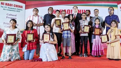 ‘নি হাও! চায়না’ শীর্ষক শিশুদের চিত্রাঙ্কন প্রতিযোগিতার ২৪তম আসরের বিজয়ী ও অংশগ্রহণকারীদের মধ্যে পুরস্কার বিতরণ করা হয়েছে। চার গ্রুপের বিজয়ী