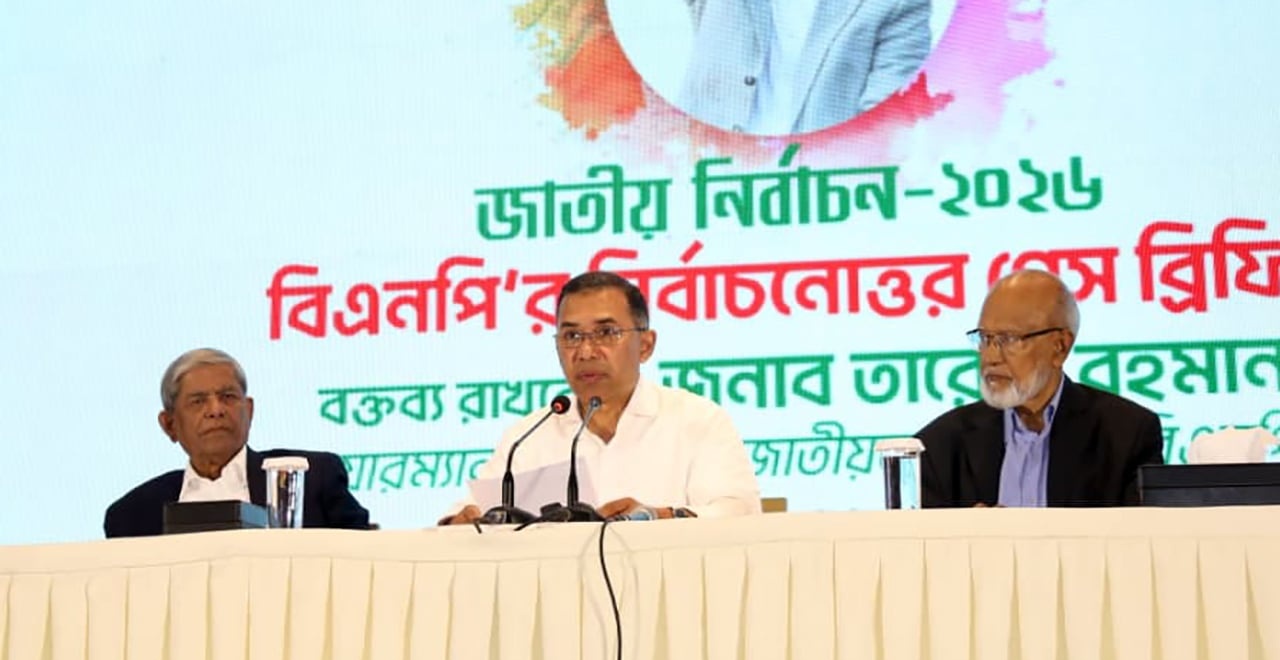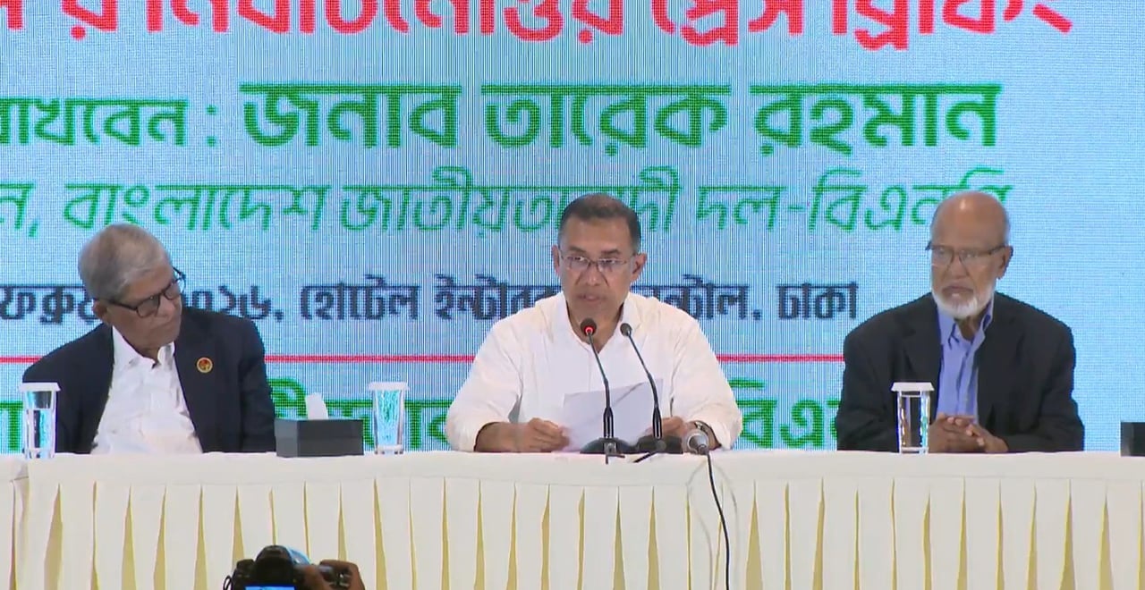 একাদশ জাতীয় সংসদ নির্বাচনে দুই-তৃতীয়াংশ আসনে বিজয়ী হওয়ার পর বিএনপি চেয়ারম্যান তারেক রহমান তাঁর প্রথম সংবাদ সম্মেলনে নবনির্বাচিত সরকারের সামনে