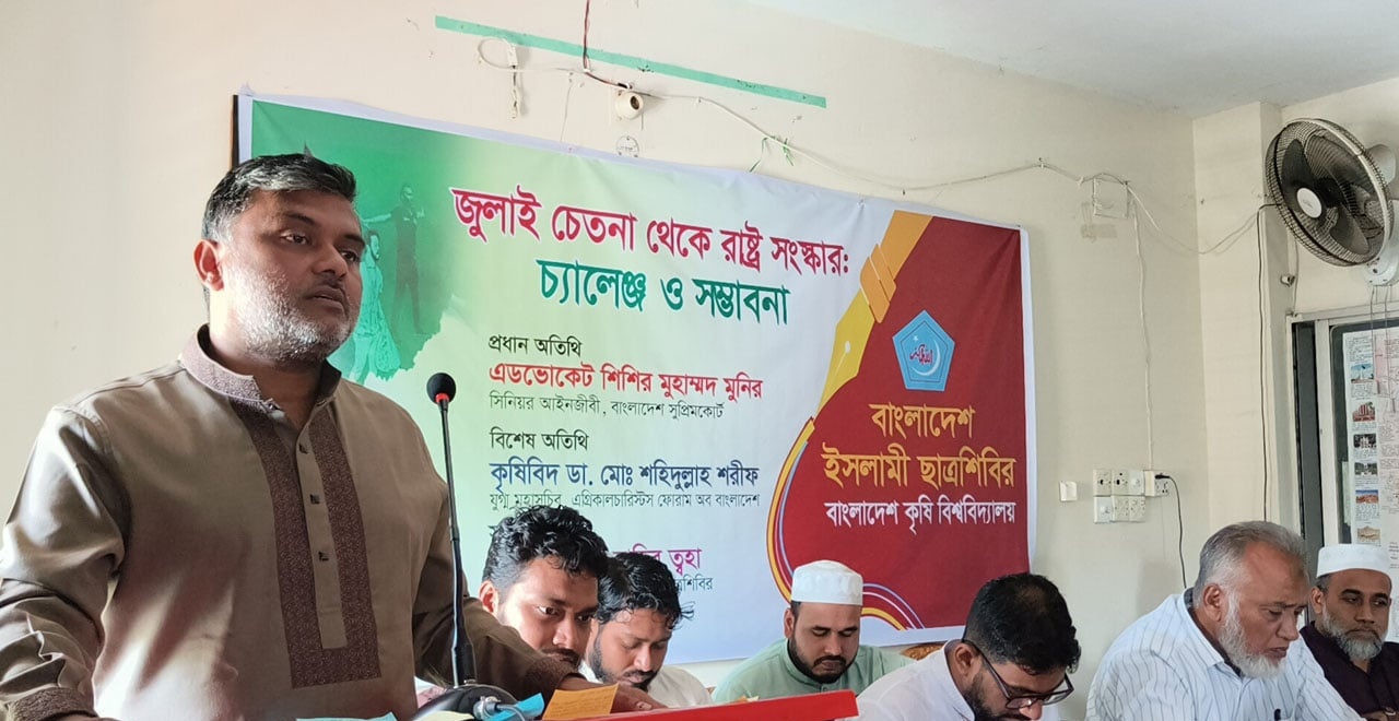 সম্প্রতি বাংলাদেশ কৃষি বিশ্ববিদ্যালয় (বাকৃবি) শাখা ছাত্রশিবিরের আয়োজনে ‘জুলাই চেতনা থেকে রাষ্ট্র সংস্কার: চ্যালেঞ্জ ও সম্ভাবনা’ শীর্ষক এক সেমিনারে প্রধান