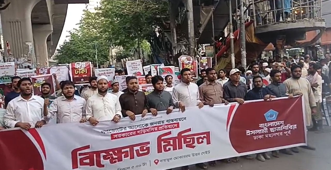 গণভোটের রায় বাস্তবায়নে সরকারের গড়িমসির প্রতিবাদে ছাত্রশিবিরের বিক্ষোভ