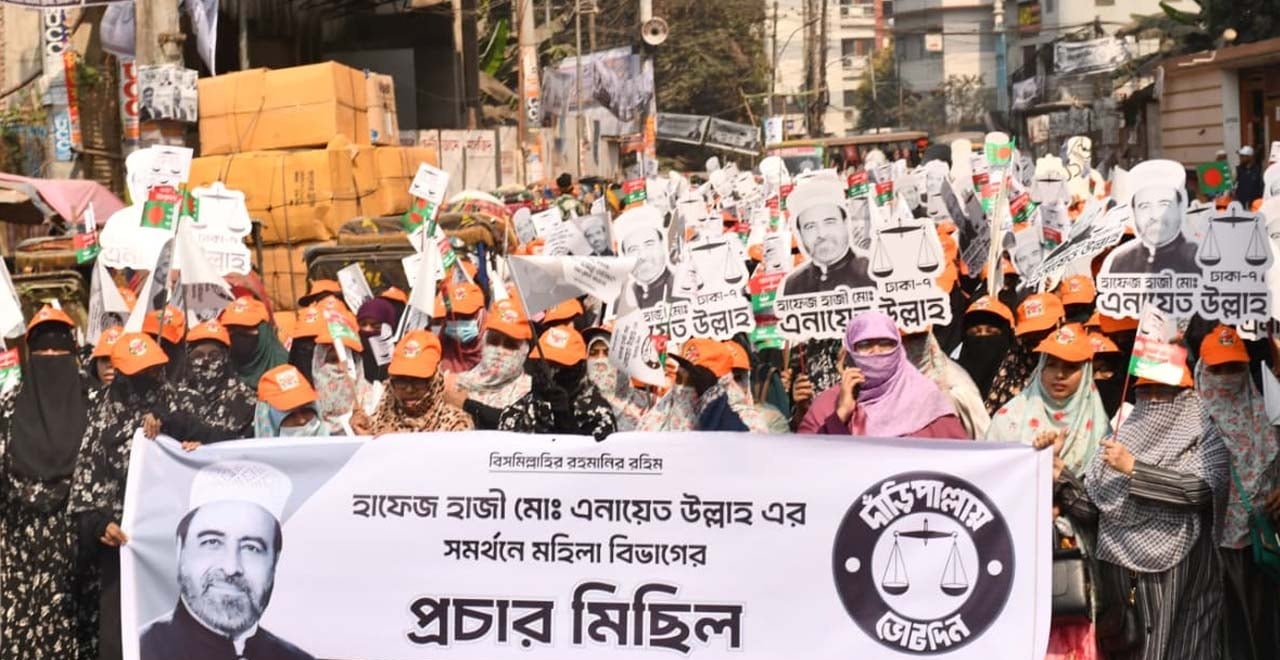 ঢাকা-৭ আসনে জামায়াত প্রার্থীর সমর্থনে মহিলা বিভাগের গণমিছিল, ভোট কারচুপির বিরুদ্ধে সতর্কবার্তা