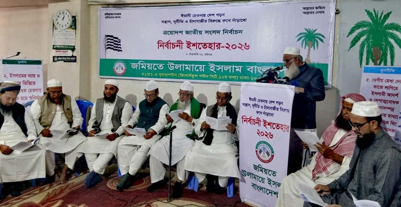আসন্ন ত্রয়োদশ জাতীয় সংসদ নির্বাচনকে কেন্দ্র করে নিজেদের কর্মপরিকল্পনা ও নির্বাচনি ইশতেহার ঘোষণা করেছে জমিয়তে উলামায়ে ইসলাম বাংলাদেশ। রোববার দুপুরে