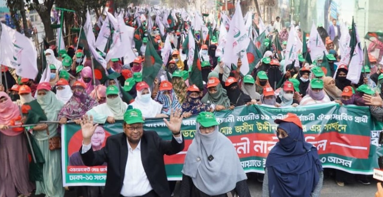 ঢাকা-১০ আসনে জামায়াত প্রার্থীর সমর্থনে নারী কর্মীদের বিশাল মিছিল