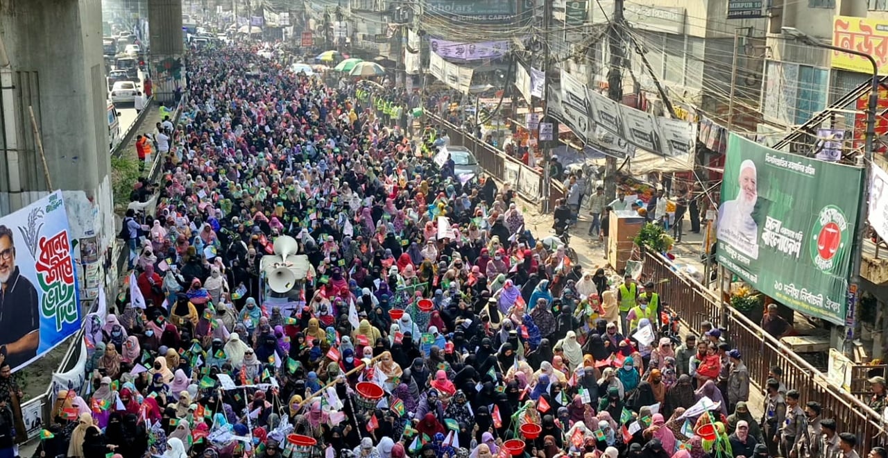 জামায়াত আমিরের পক্ষে ভোট চেয়ে মিরপুরে বিশাল নারী মিছিল