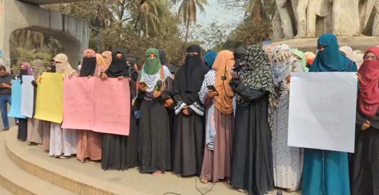 নারী নির্যাতনের প্রতিবাদে ঢাকা বিশ্ববিদ্যালয়ে ইসলামী ছাত্রীসংস্থার বিক্ষোভ সমাবেশ