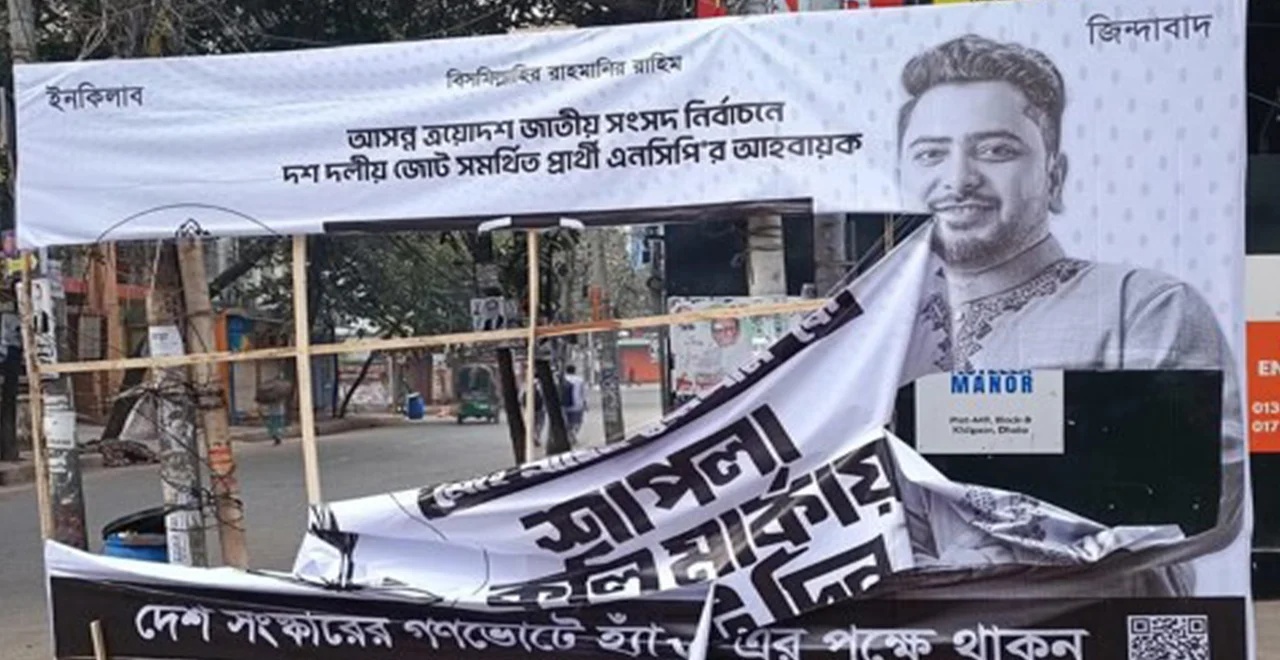 ঢাকা-১১ আসনে নির্বাচনী উত্তাপের মধ্যে নিজের প্রচারসামগ্রী ভাঙচুর ও বিলবোর্ড ছিঁড়ে ফেলার অভিযোগ তুলেছেন ১১-দলীয় জোটের প্রার্থী এবং জাতীয় নাগরিক