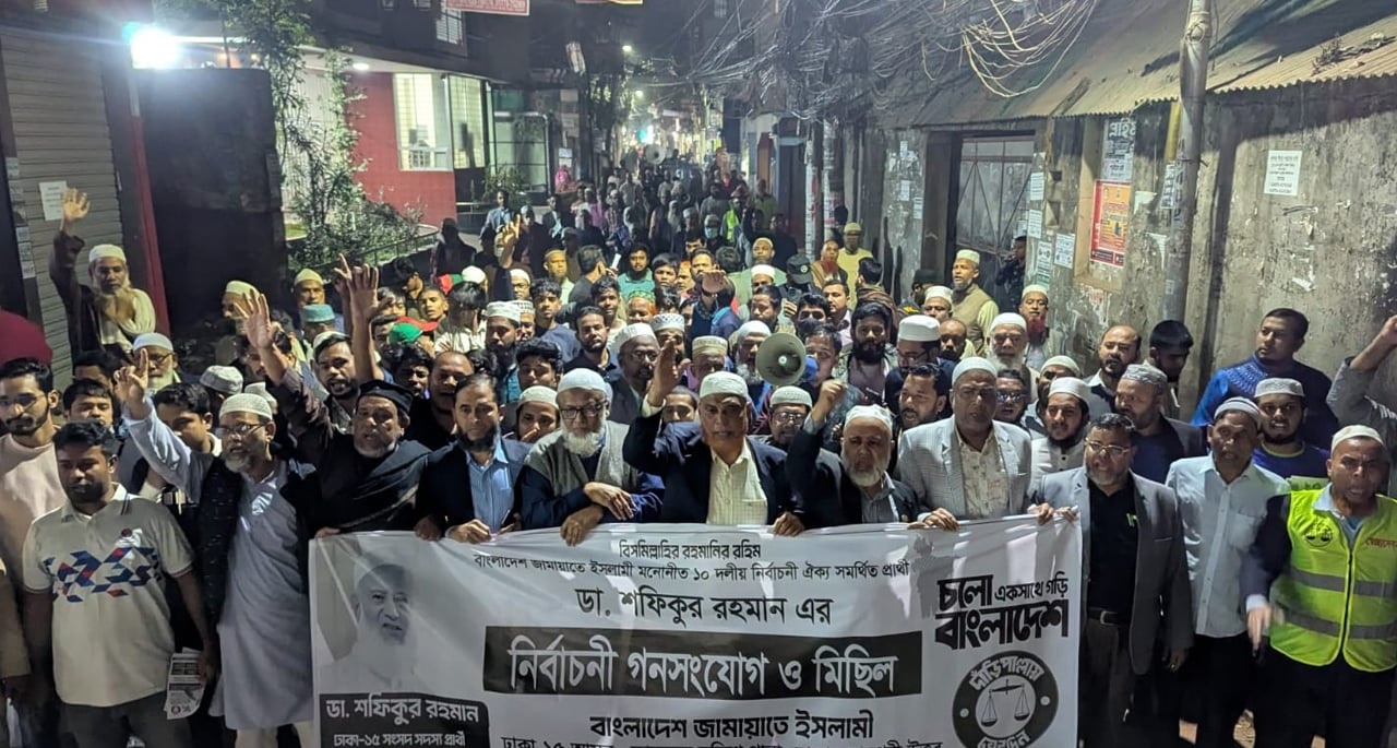 ঢাকা-১৫ আসনে জামায়াতের প্রার্থীর পক্ষে ব্যাপক গণসংযোগ ও মিছিল