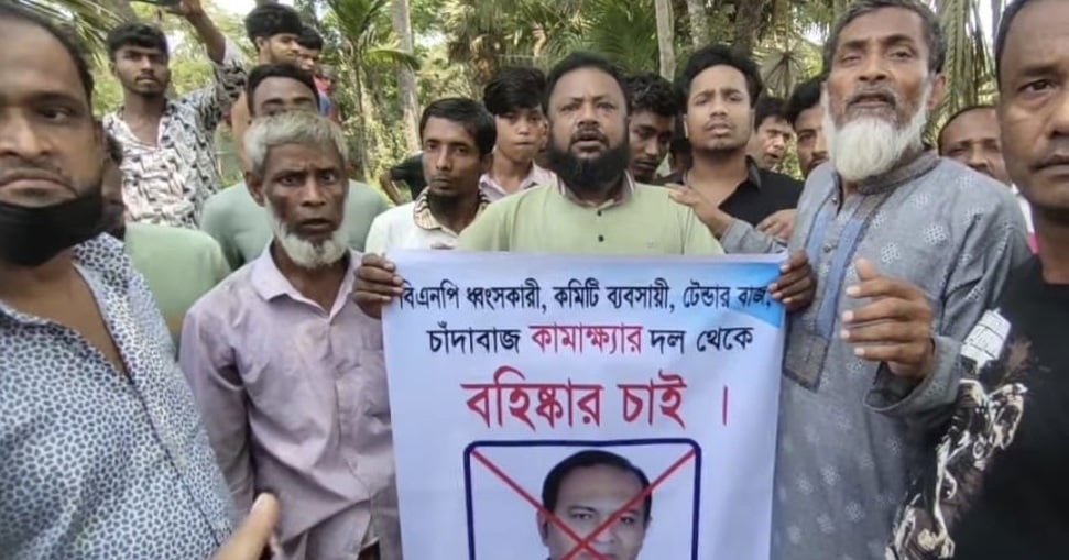 নোয়াখালীতে বিএনপি নেতার বিরুদ্ধে চাঁদাবাজি ও জমি দখলের অভিযোগ, নিজ দলের নেতাকর্মীদের বিক্ষোভ