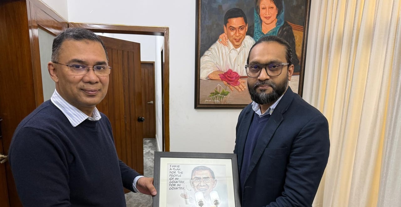 তারেক রহমানকে বিশেষ কার্টুন উপহার দিলেন শিল্পী উদয়
