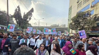 তারেক রহমানের দেশে ফেরা উপলক্ষে বিএনপির মিছিল
