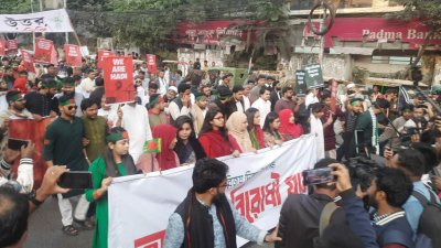 মহান বিজয় দিবস উপলক্ষে এনসিপির উদ্যোগে রাজধানীতে ‘আগ্রাসন বিরোধী’ যাত্রায় নেতাকর্মীদের ঢল নেমেছে। মঙ্গলবার (১৬ ডিসেম্বর) বিকাল ৪টায় রাজধানীর বাংলামোটর