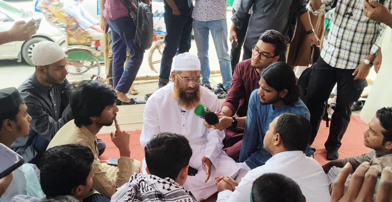 গণভোটের রায় বাস্তবায়নের দাবিতে রাজধানীর রাজু ভাস্কর্যে অনশনরত ঢাকা বিশ্ববিদ্যালয়ের শিক্ষার্থীদের প্রতি সংহতি প্রকাশ করেছেন বাংলাদেশ খেলাফত মজলিসের আমির মাওলানা