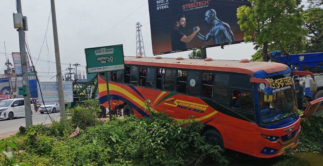 কুমিল্লায় বৃদ্ধের প্রাণ বাঁচাতে গিয়ে দুর্ঘটনার কবলে বাস, অল্পের জন্য বাঁচলেন যাত্রীরা