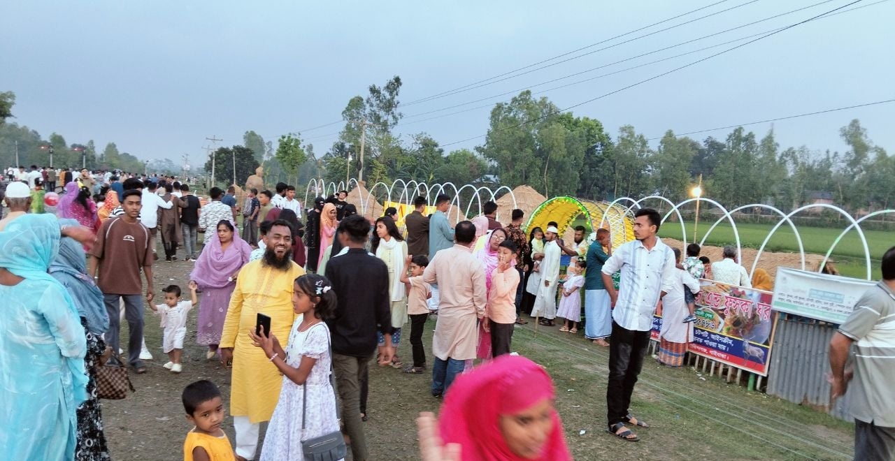 ঈদের ছুটিতে সাঘাটার আলাই-বাঙালি নদীর ধারে পর্যটকদের উপচে পড়া ভিড়