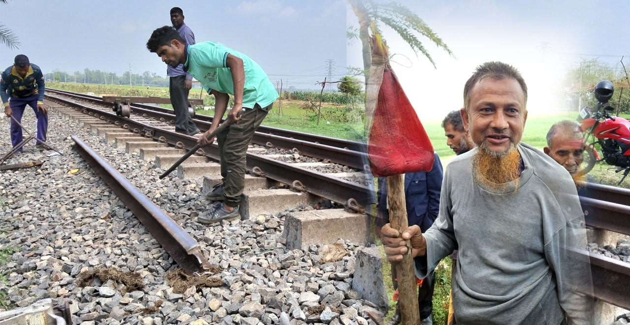 লাঠিতে কলার মোচার লাল পাপড়ি (খোল) ঝুলিয়ে এক সাধারণ শ্রমিক ঘুমন্ত ট্রেনযাত্রীদের জীবন বাঁচিয়েছেন। সোমবার সকাল সাড়ে ৬টার দিকে দিনাজপুরের