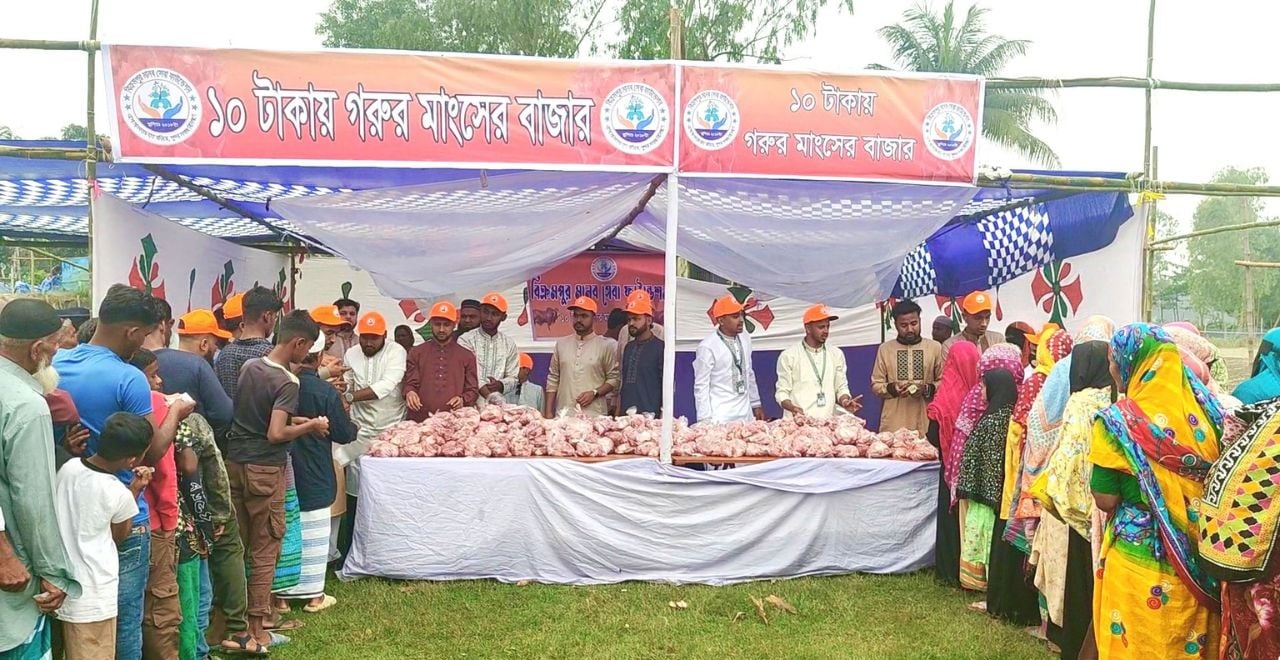 মুন্সিগঞ্জের টঙ্গিবাড়ীতে ঈদ উপলক্ষে ৫২৩টি অসচ্ছল পরিবারের মাঝে মাত্র ১০ টাকা কেজি দরে গরুর মাংস বিক্রি করেছে একটি স্বেচ্ছাসেবী সংগঠন।