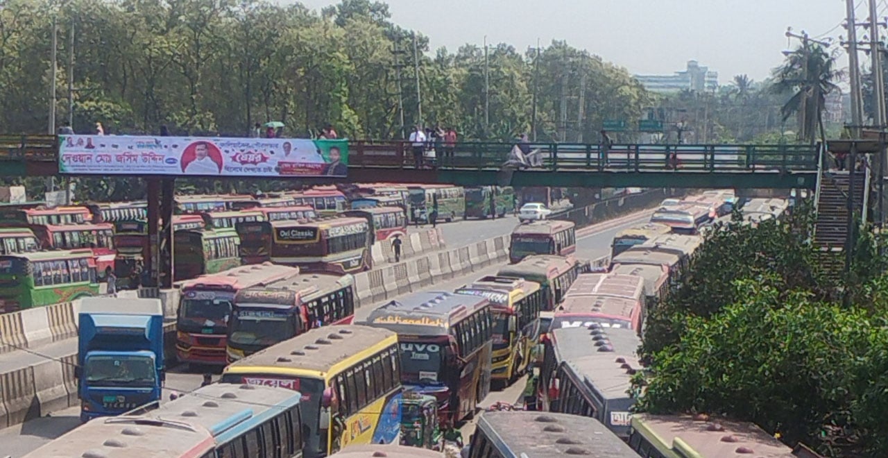 ঈদের আগে ঢাকা-টাঙ্গাইল মহাসড়কে দীর্ঘ যানজট, ভোগান্তিতে ঘরমুখো মানুষ