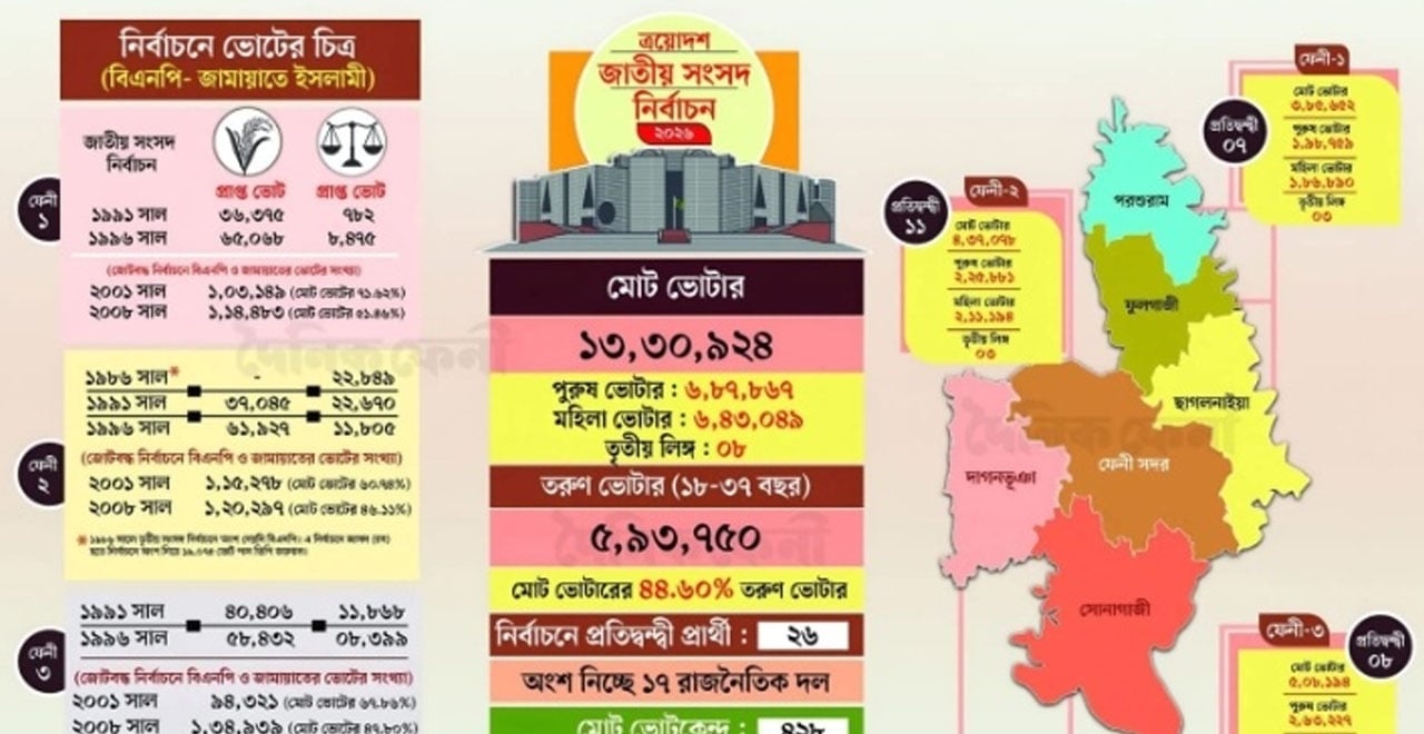 ## ফেনীর নির্বাচনী লড়াই: বিএনপির ‘প্রত্যাবর্তন’ নাকি জামায়াতের ‘বাজিমাত’? ফেনী: আসন্ন ত্রয়োদশ জাতীয় সংসদ নির্বাচন ও গণভোটকে সামনে রেখে ফেনীর
