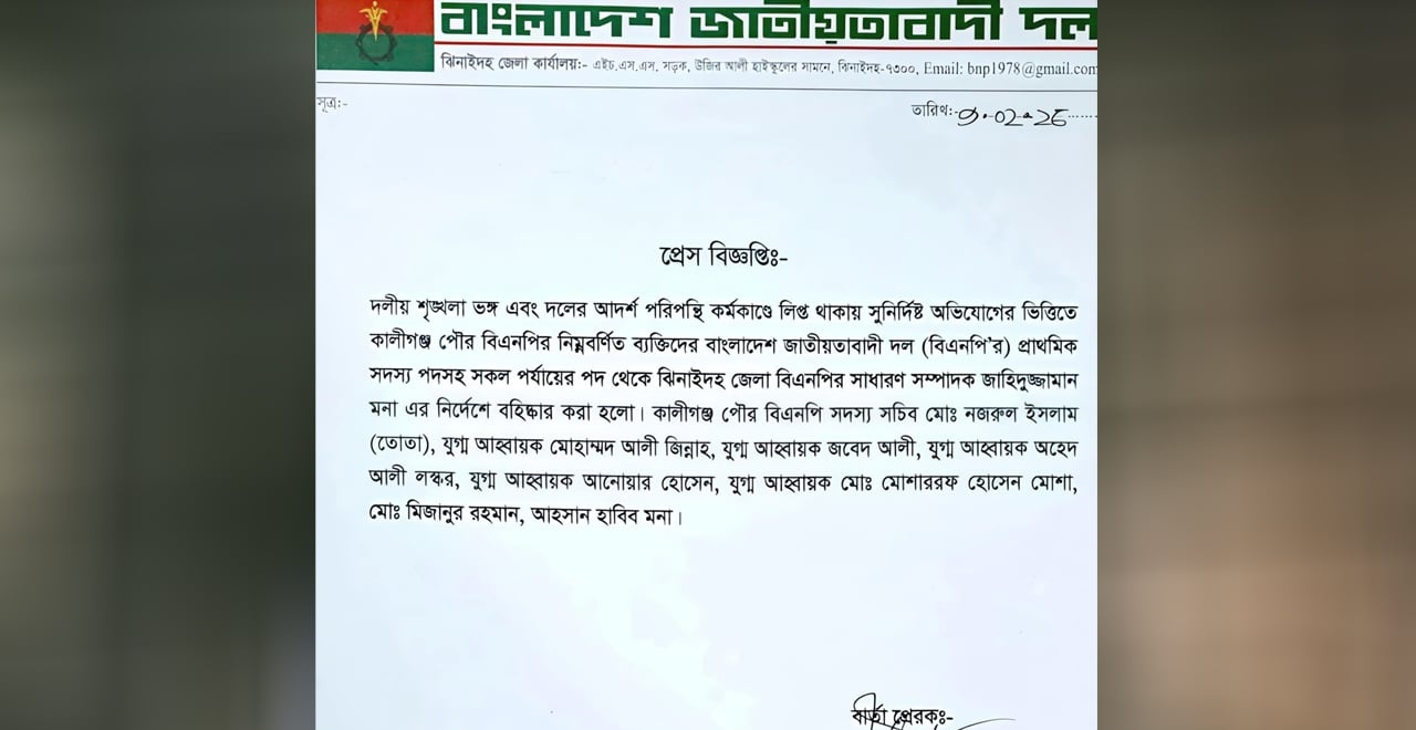 দলীয় শৃঙ্খলা ভঙ্গ: কালীগঞ্জ পৌর বিএনপির ৮ নেতাকে বহিষ্কার