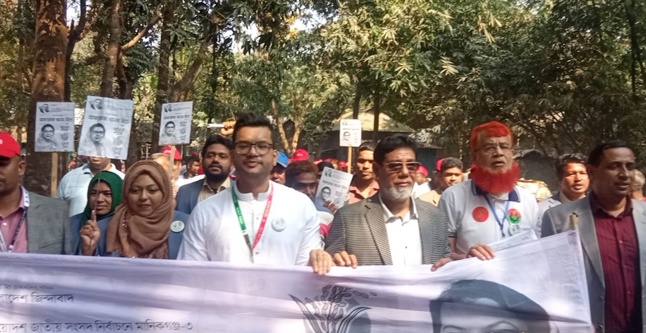 মানিকগঞ্জ-৩ আসনে বিএনপি মনোনীত ধানের শীষ প্রতীকের প্রার্থী আফরোজা খানম রিতার পক্ষে ব্যাপক গণসংযোগ চালিয়েছেন তার মেঝ ছেলে রাশীদ সামিউল