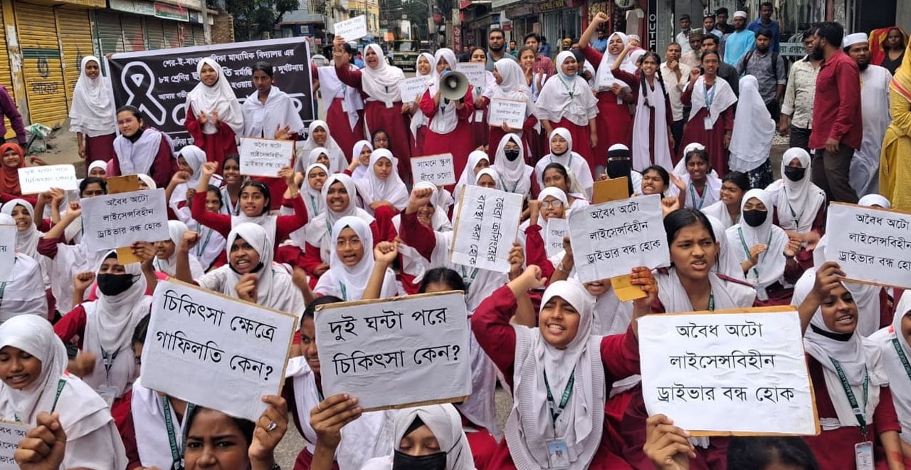 অটোরিকশার চাপায় স্কুলছাত্রী নিহত: বরিশালে শিক্ষার্থীদের সড়ক অবরোধ, প্রশাসনের আশ্বাস