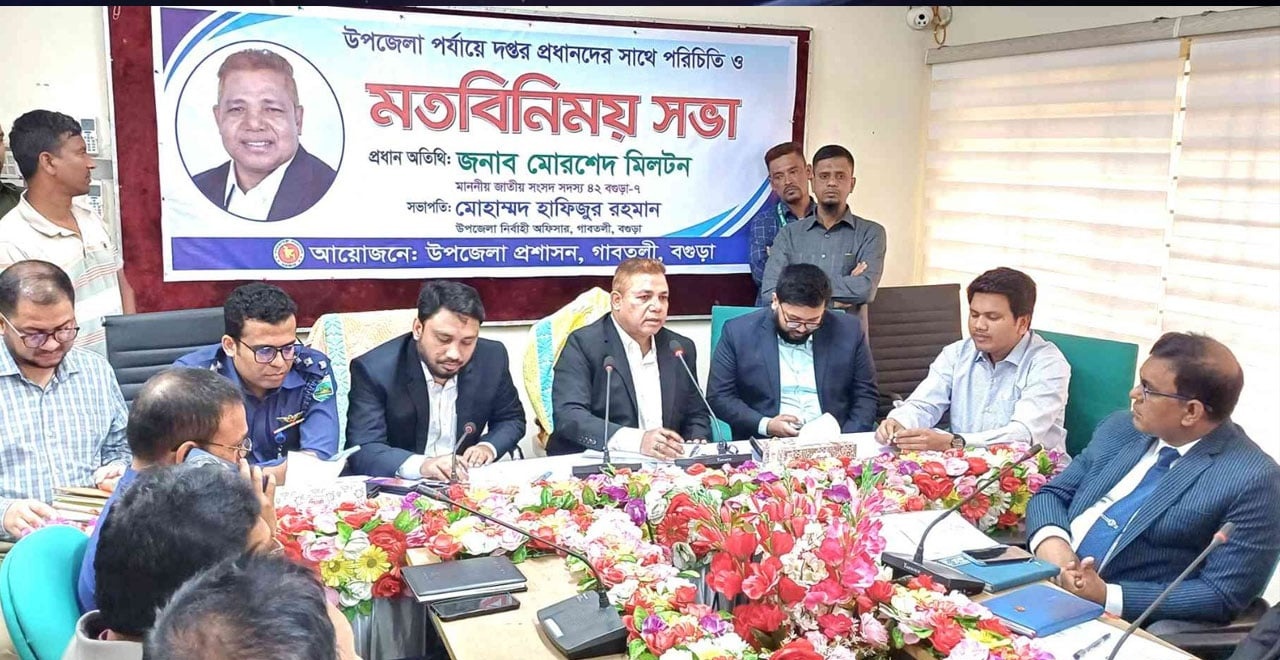 বগুড়া-৭ আসনের সংসদ সদস্য মোরশেদ মিলটন তার নির্বাচনী এলাকার সার্বিক উন্নয়নের জন্য সরকারি কর্মকর্তাদের আন্তরিক সহযোগিতা চেয়েছেন। মঙ্গলবার (২৪ ফেব্রুয়ারি)