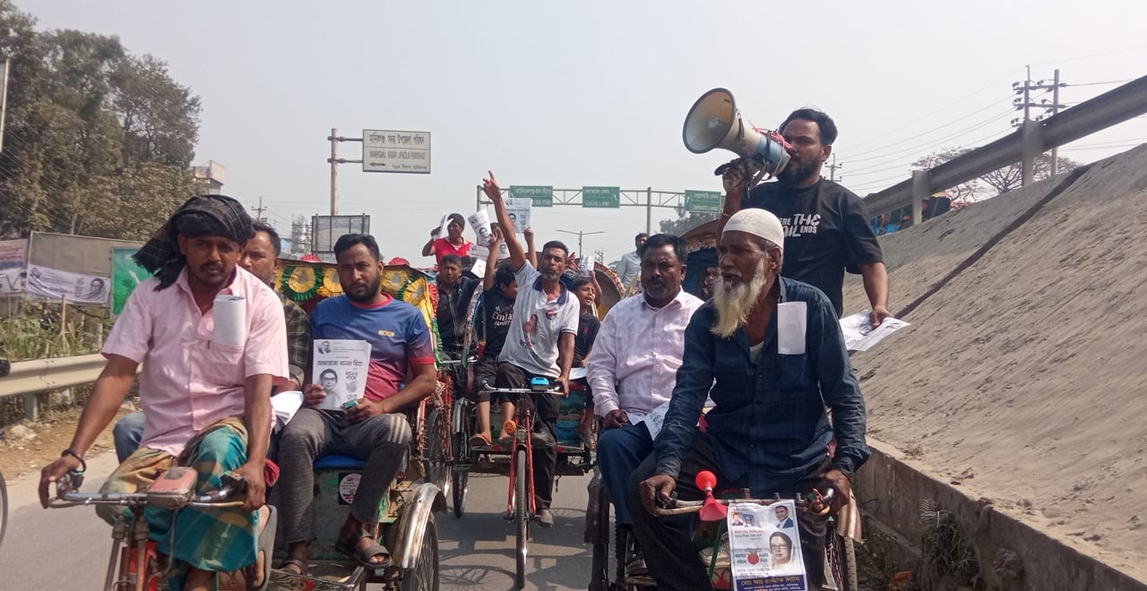 বিএনপি প্রার্থী রিতার পক্ষে রিকশা শ্রমিকদের ব্যতিক্রমী র্যালি