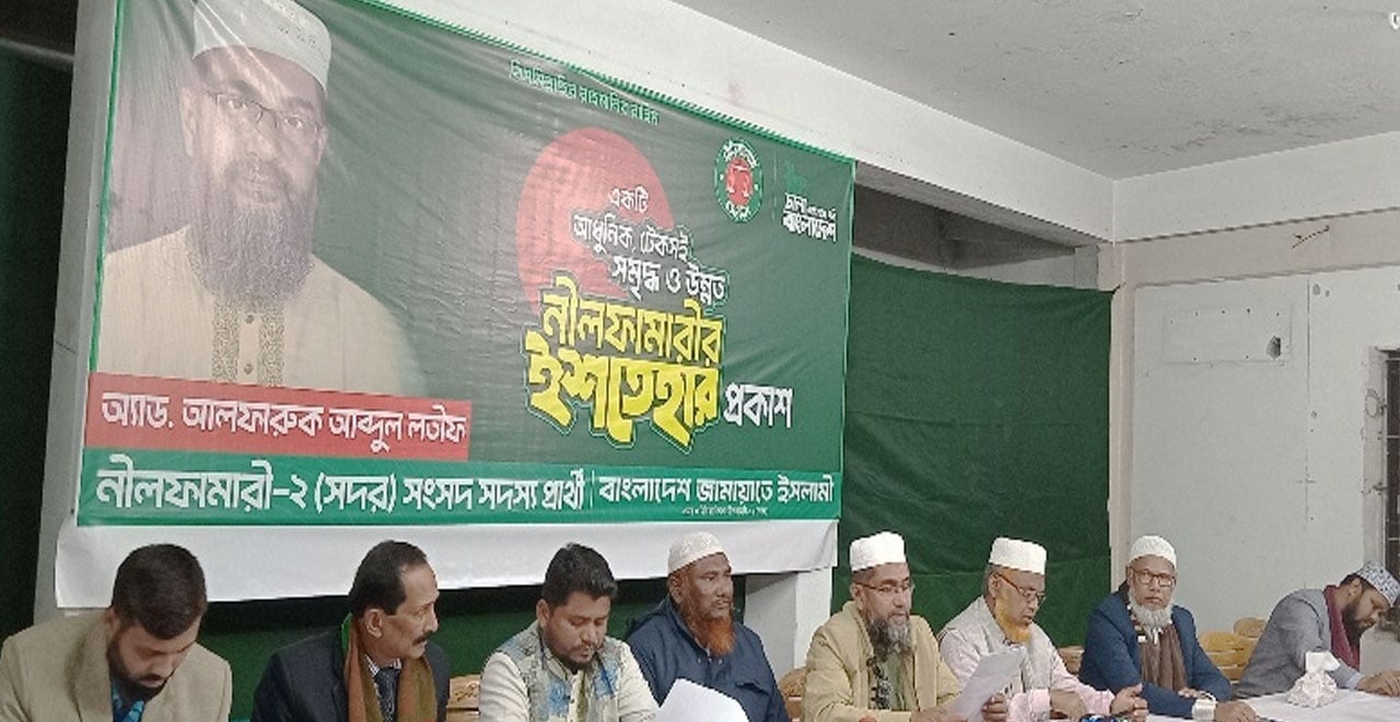 আসন্ন জাতীয় সংসদ নির্বাচনকে সামনে রেখে নীলফামারী-২ আসনে বাংলাদেশ জামায়াতে ইসলামীর মনোনীত প্রার্থী অ্যাডভোকেট আলফারুক আব্দুল লতীফ তাঁর নির্বাচনী ইশতেহার