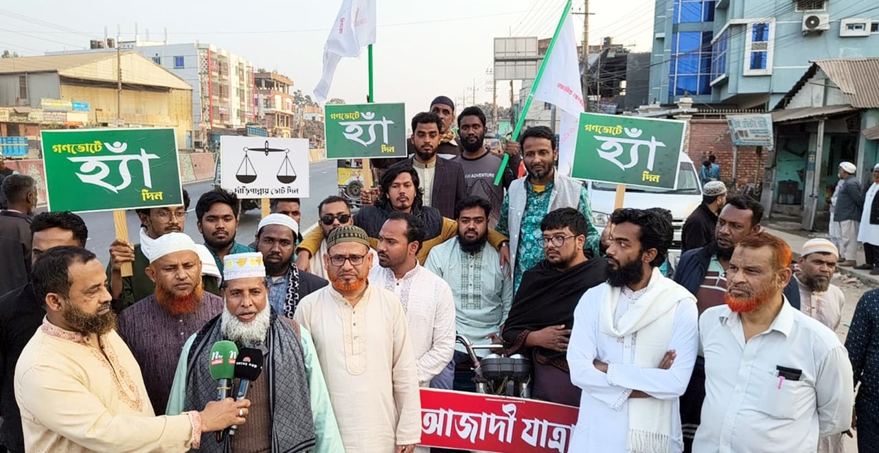 বগুড়ার শেরপুরে ‘হ্যাঁ’ ভোট ও দাঁড়িপাল্লার সমর্থনে আজাদী যাত্রা