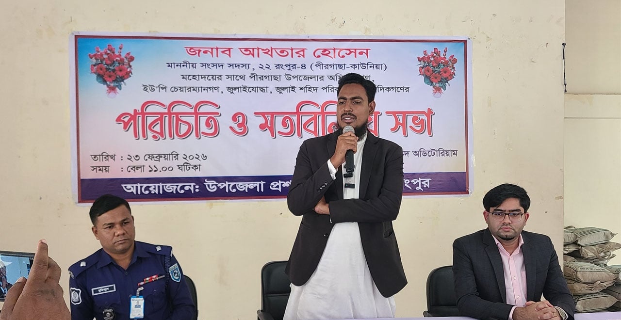 রংপুরের পীরগাছাকে একটি আধুনিক, দুর্নীতিমুক্ত ও আদর্শ মডেল উপজেলা হিসেবে গড়ে তোলার অঙ্গীকার ব্যক্ত করেছেন রংপুর-৪ আসনের নবনির্বাচিত সংসদ সদস্য