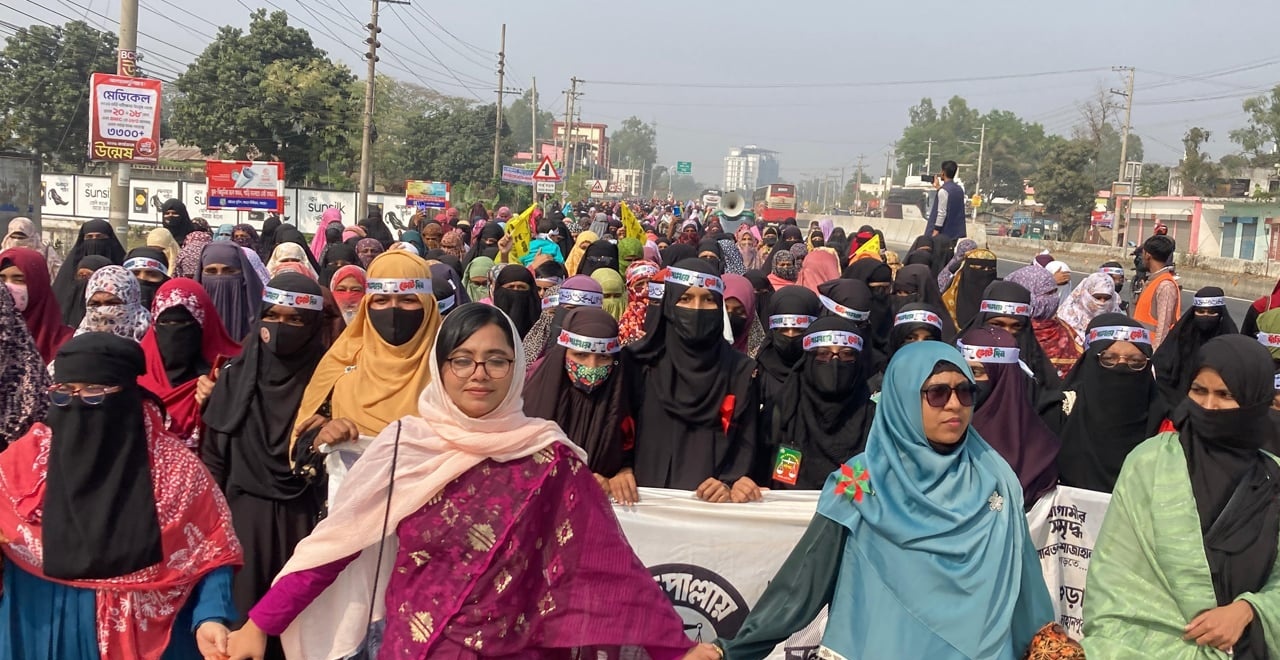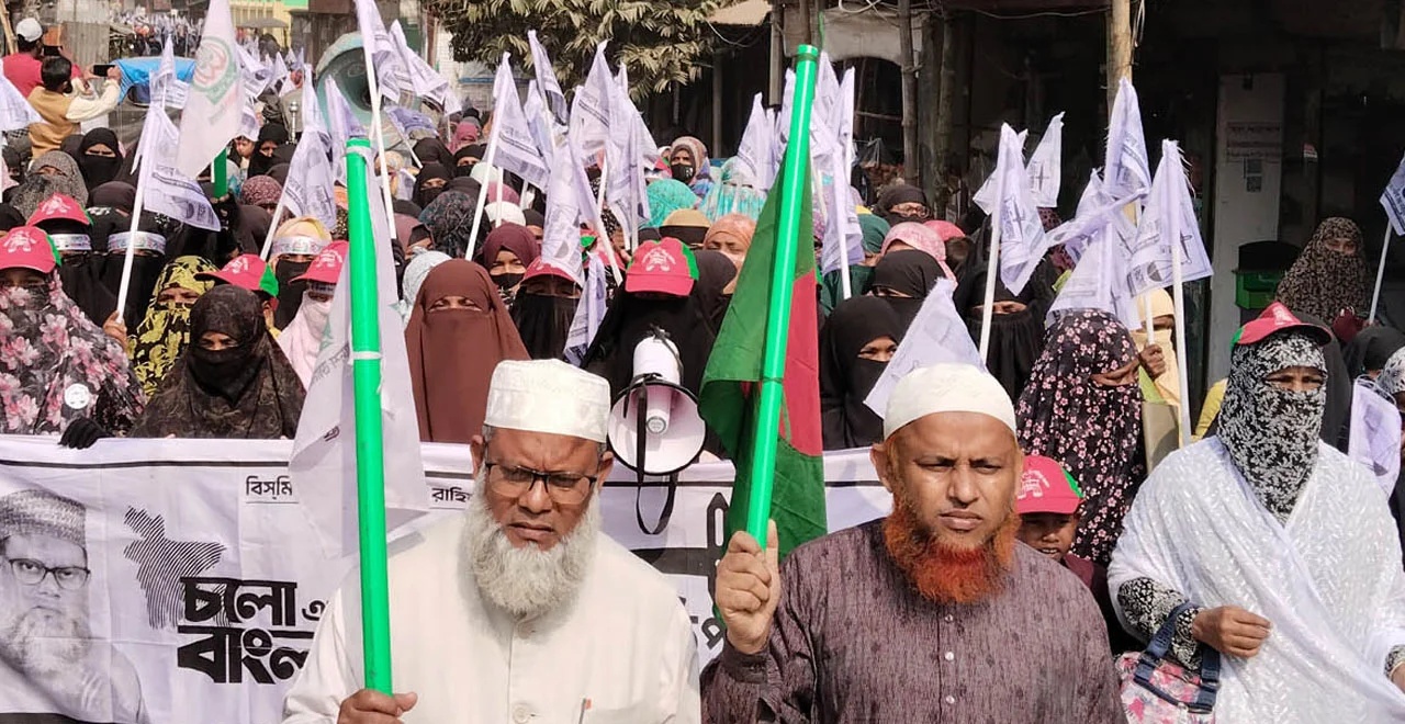 বগুড়া-৫: ধুনটে জামায়াত প্রার্থীর সমর্থনে নারী ভোটারদের মিছিল