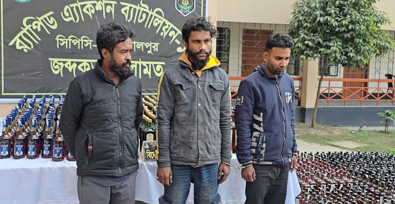 শেরপুরে বিপুল পরিমাণ বিদেশি মদসহ তিন মাদক ব্যবসায়ী আটক