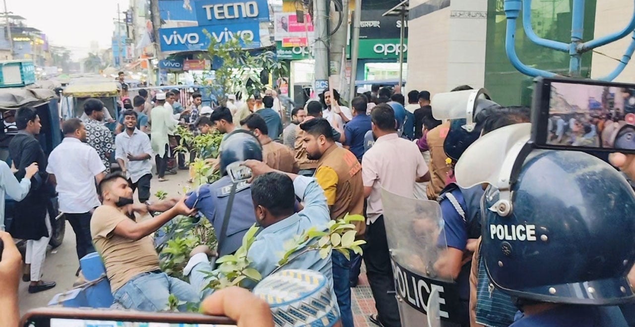 লক্ষ্মীপুরে পুলিশের সঙ্গে সংঘর্ষে ওসি সহ ১০ আহত, ১৪৪ ধারা জারি