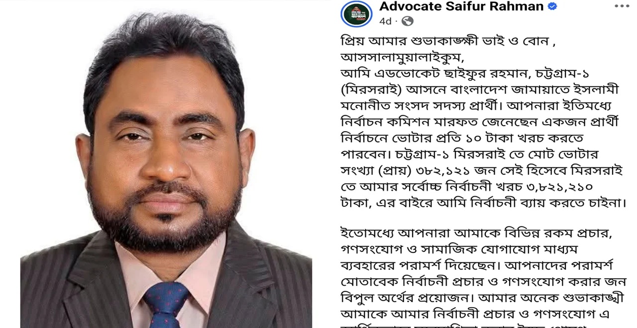 নির্বাচনি ব্যয় নির্বাহে জনসহযোগিতা চাইলেন জামায়াত প্রার্থী, আলোচনায় মিরসরাই