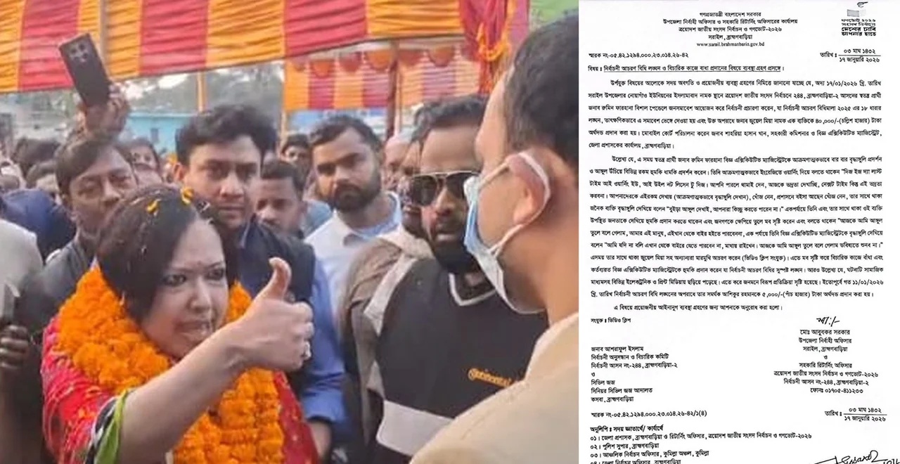ব্রাহ্মণবাড়িয়া-২ আসনের স্বতন্ত্র প্রার্থী ব্যারিস্টার রুমিন ফারহানার বিরুদ্ধে নির্বাচনী আচরণবিধি লঙ্ঘনের অভিযোগে আইনি ব্যবস্থা গ্রহণের জন্য সিনিয়র সিভিল জজ আদালতে