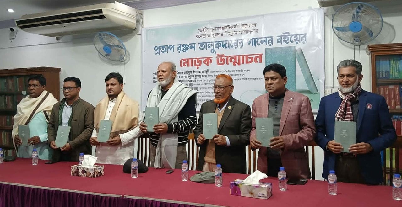 সুনামগঞ্জে বর্ণাঢ্য আয়োজনে উন্মোচিত হলো গীতিকার প্রতাপ রঞ্জন তালুকদারের গানের বই। রনেন্দ্র তালুকদার পিংকুর নিপুণ সম্পাদনায় প্রকাশিত এই গীতসংকলনের মোড়ক