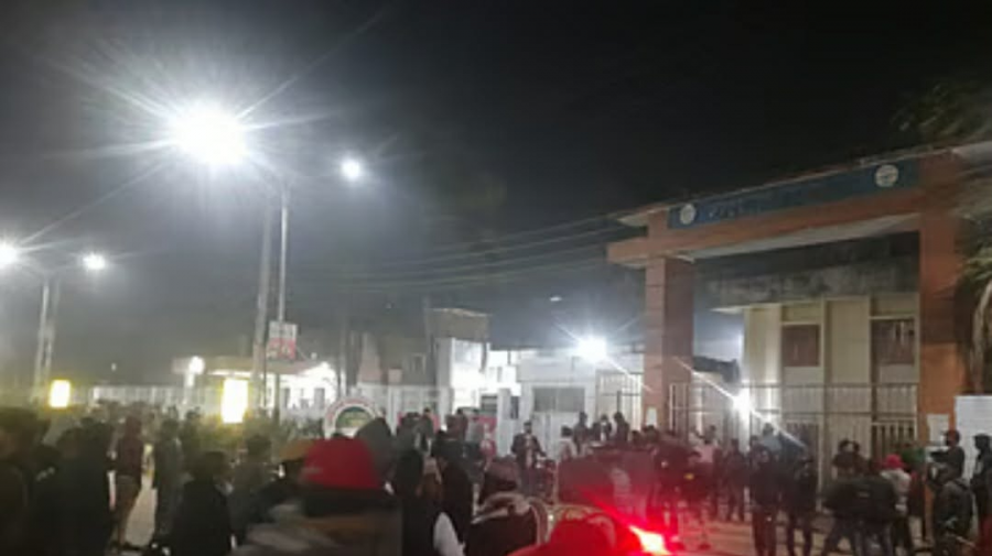 বৈষম্যবিরোধী নেতাকে আটকের পর হবিগঞ্জ সদর থানার সামনে নেতাকর্মীদের অবস্থান