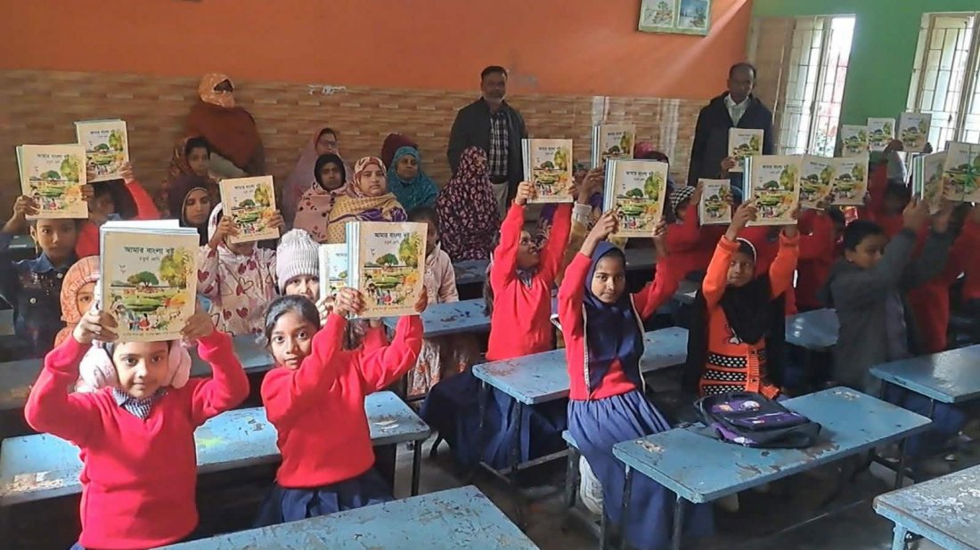 রাজশাহীতে নতুন বইয়ের ঘ্রাণে শিক্ষার্থীদের নতুন শুরু