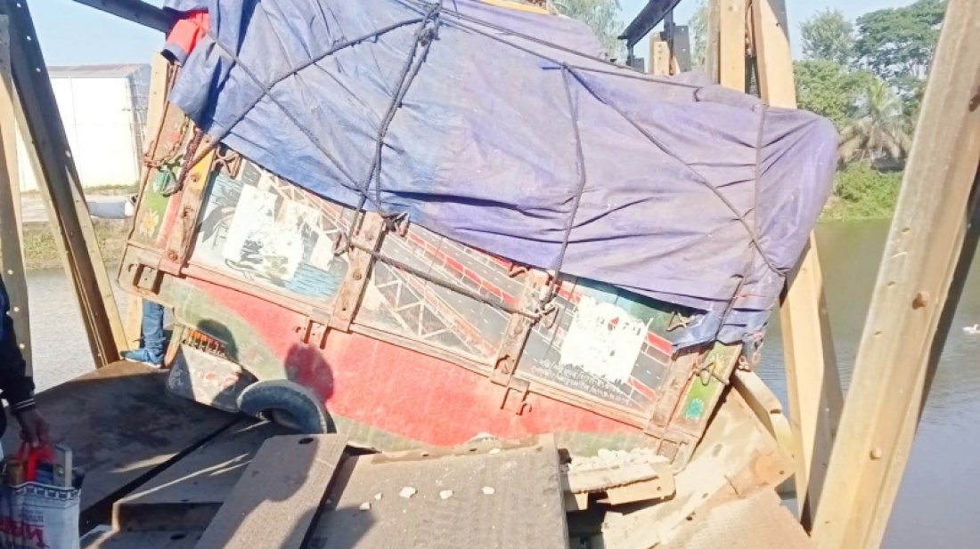 পাথরবোঝাই ট্রাক উঠতেই ভেঙে পড়লো ব্রিজ, দুই উপজেলার যোগাযোগ বিচ্ছিন্ন