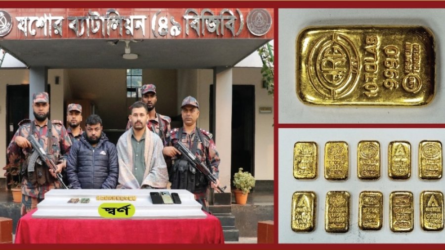 যশোরে এক কেজি স্বর্ণসহ দুই চোরাকারবারি আটক