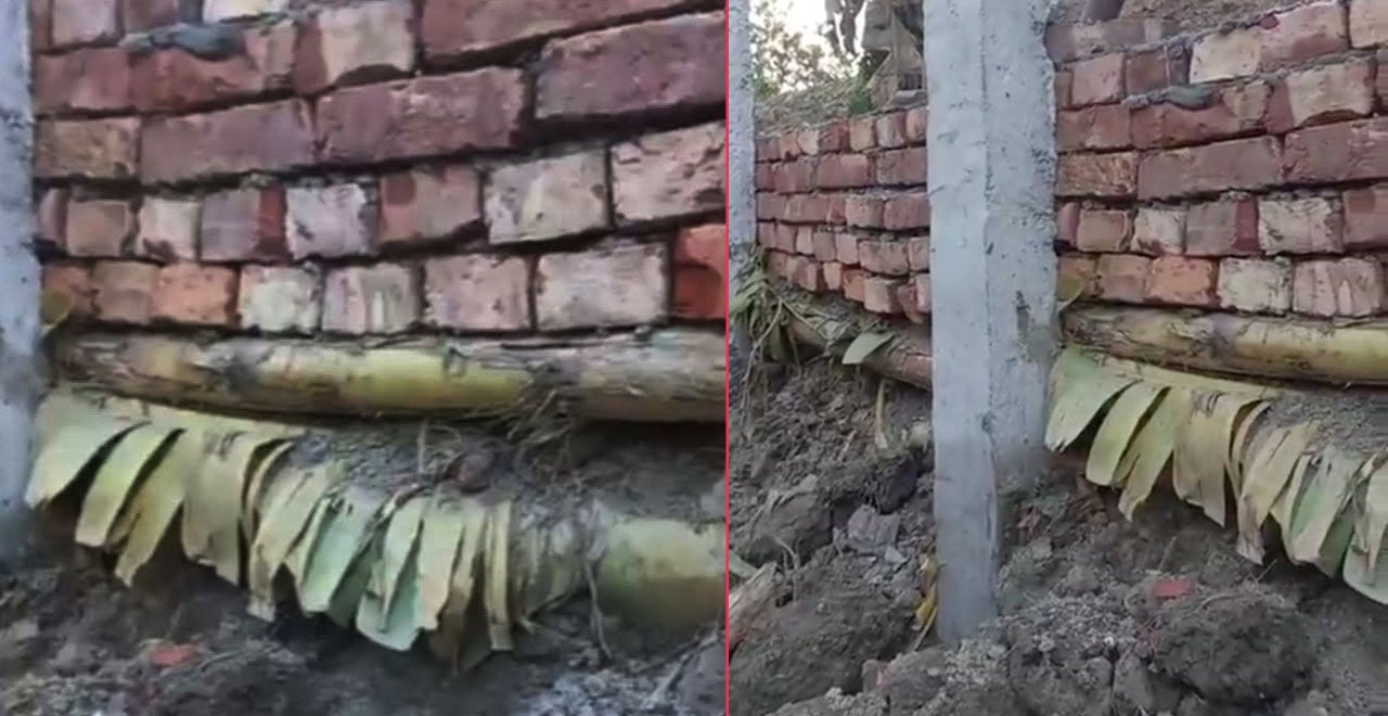 গাইডওয়াল নির্মাণে চরম অনিয়ম: ইটের নিচে কলাগাছ!