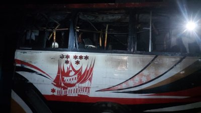 ধামরাইয়ে সড়কের পাশে দাঁড় করিয়ে রাখা বাসে আগুন