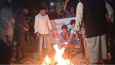 বাকৃবিতে বিসিএসের প্রবেশপত্র পুড়িয়ে রেল অবরোধ