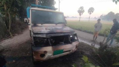 ময়মনসিংহে দাঁড়িয়ে থাকা পিকআপভ্যানে অগ্নিসংযোগ