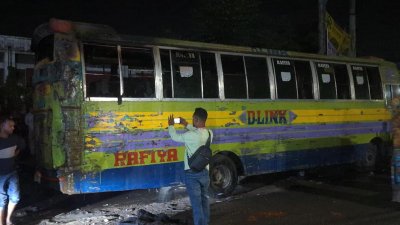 গানপাউডার ছিটিয়ে দাঁড়িয়ে থাকা বাসে আগুন